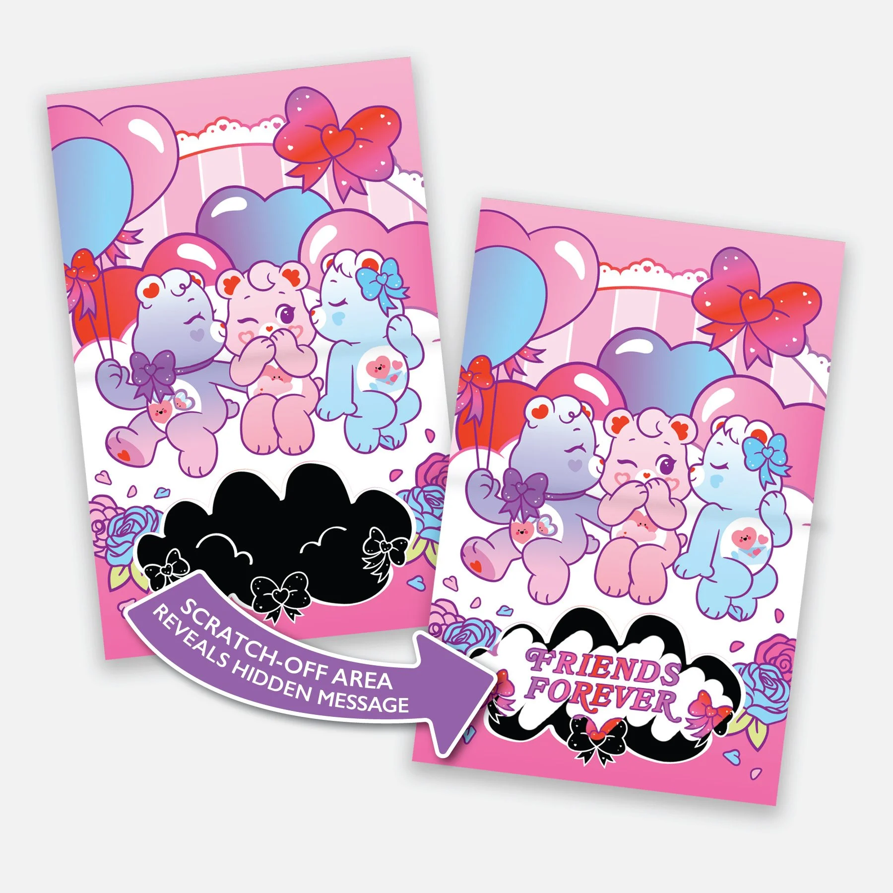 Multiple Valentine Pre-Pros were designed for Walmart. Licenses included Care Bears, Hot Wheels, Rachael Hale, and more! Each licensed Valentine cards come with a unique feature. Varying from Scratch Fantastic cards to foil stickers.